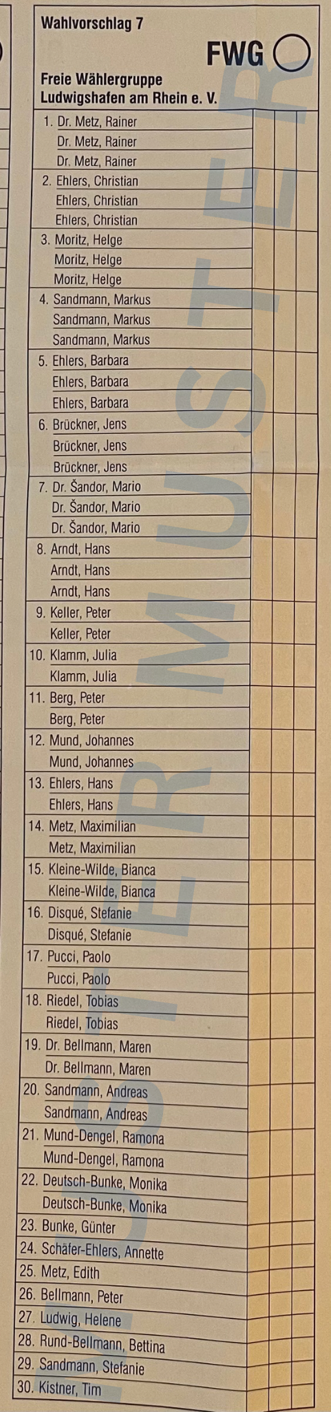 MUSTER - Liste 7 - Stadtratswahl 2024